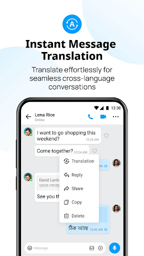 Translate effortlessly for seamless cross-language conversations. imo supports instant text message translation similar to what Telegram has, making it easy to stay connected worldwide, just like on WhatsApp and BOTIM.